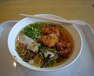 唐揚げラーメンを食べながらこれから食べに行くうどん屋の検討をする。