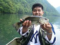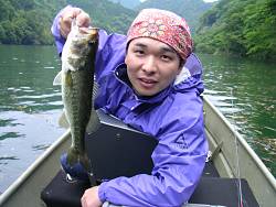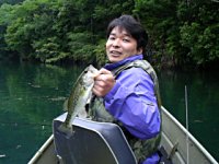 七色ダムにて 2003年6月7日 曇り のち 晴れ のち 雨 のち!!! ![]() 七色ダムで釣れているらしい、ということで久しぶりに気合をいれた釣り。 夜中に山道を走る。 AM 2:00 大迫ダムあたりから車が混み始め、 前2台、後ろ5台の列となる。 先頭はバスボートを牽引している。 2台目はアルミのカートップ。後ろにもカートップが続く。 さすがに池原七色は全国区だけあって夜中2時にこの盛況。 バス釣りブームまだまだ安泰か。 AM 3:30 ボート屋さんに着く。 まだ営業前だが駐車場はいっぱい。 天気は曇りで少し寒い。 AM 4.30 営業開始時間に合わせて仮眠から起き、支度を開始。 短パンTシャツで来たのは間違いだった。寒いのでカッパを着る。 AM 5:00 出船。 今回は同行者が操船してくれるので5馬力エンジンつきボートを借りた(1万円)。 事前情報ではカットテールやセンコーがよい、とのことだったが、七色まで来て・・・ということで最初はトップ(あらいくん)なんぞを 投げてみるも、すぐにくじけてカットテールを結ぶ。 型はイマイチながらポツポツ釣れる。 AM 10:00 七色ダムの象徴ともいえる発電所跡付近に大移動。 天気は回復し日差しが強くなり気温も上昇。 同行者トップで2匹釣る。柿之介30分ほど戦線離脱(昼寝)。 AM 11:30 戦線復帰後の柿之介好調。 しかしそのとき上空からゴロゴロと嫌な響きが・・・。 雷にビビッてボート屋付近まで戻ることに決定。 ボートを走らせているときに雨が降り出す。 ![]() PM 0:00 雨はそれほど強くなく、雷もなんとかいけそうなので釣り続行。 バスは大きさに不満があるもののコンスタントに釣れ続く。 柿之介、同行者ともトップ(といってもミニペンシルなんですけどね)にて 楽しい釣りをする。 曇り空ながら雨はやむ。 PM 1:40 急に涼しくなる。 PM 1:45 そよそよ程度に吹いていた風がピタッと止まる。 なんとなく、まわりが静かになる。 PM 1:50 七色の空がついに牙をむく。 豪雨 and 雷鳴 雨はともかく、雷が怖いのでしぶしぶ引き上げた。 帰る途中雨は止んだ。 雷はまだゴロゴロいっていたので まあ仕方がないが、ちょうど調子のいいところでの中断だったので少し心残り。 ちなみに釣果は2人で40匹くらい。そのうち40センチクラスは1匹づつだった。