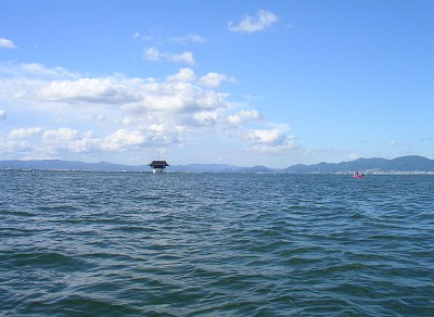ヤスとバス釣りにオバケワンドに行った。 ボート屋はいつもバス大会で使ってるところで、 早い者勝ちなので予約はしてなかったのだが、 いってみると大会と重なって手漕ぎボートが出払ったという。 うーん、しょっぱなから躓いた。 仕方がないので他のボート屋に行くことにしたのだが、 あんまりボート屋って知らんのよねぇ〜。 そこで携帯電話を使ってWEBサイトにアクセスし情報収集。 ここから一番近そうなところは・・・お、雄琴にレンタルボート屋があるな。 ということで、電話をかけてみる。 柿之介 : 「今から手漕ぎボート借りたいんですが、いけますか?」 ボート屋 : 「大丈夫ですよ〜」 ひとまず安心。場所を聞いて行ってみた。 しかし、すごいですねぇ。 僕が学生の頃はインターネットどころか携帯電話も普及してなくて、 一人暮らしの友達と連絡取るだけでも苦労したのに・・・。 世の中どんどん便利になりますなぁ。 で、ボート屋に着くとなんか忙しそう。 でかい車とバスボートで溢れかえっている。 どうも本業はバスボート管理と昇降みたい・・・。 柿之介 : 「すいません、さっき電話した者なんですけど・・・」 ボート屋 : 「はい、いらっしゃいませ」 柿之介 : 「手漕ぎボート貸して欲しいんですが、ありますか?」 ボート屋 : 「手漕ぎ?え〜、ありますよ」 柿之介 : 「おいくらですか?二人乗れますよね?」 ボート屋 : 「大丈夫ですよ。2000円です」 柿之介 : 「え、2000円?(や、やすい!)」 ボート屋 : 「はい。そしたら準備しますんでちょっと待っててもらえますか」 お金を払って携帯番号を書いて、準備ができたら電話してもらうことにした。 30分ほど放置された後、電話がかかってきて、 「準備できたんで桟橋まできてください」とのこと。 いってみると、まだ掃除中。 やっぱり雰囲気的に見てもここで手漕ぎボートを借りる人はほとんどないと思われる。 ボート自体はきれいではなかったけど、安かったし店の人も愛想よかったんで別に文句はない。 待たされたのも、忙しそうだったんで仕方ないだろう。 ボート屋 : 「はい、これがボートです。手漕ぎボートなんですが・・・手で漕がれるんですか?」 柿之介 : 「???、・・・はい」 ボート屋 : 「そうですか。大変ですけど、がんばってくださいねぇ〜」 うぬぅ〜、エンジン船よりぎょうさん釣ったるわい! と、がんばってみたものの、この日は沖のバスボートが避難してくるほどの強風が吹いていて、 手漕ぎで向かい風では全く進まない。 しかも、こんな天気でも湖上はボートだらけ。 すぐ近くを速度も緩めずガンガンボートが走っていく。 いや〜、久しぶりに船酔いしたね。手漕ぎで。