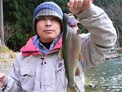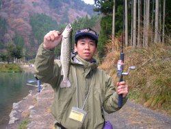今年も残すところ1ヶ月強となり、 さすがに朝晩は寒くなってきた。 釣りにオフシーズンはないが、やはりどちらかといえば冬は釣り物の少ない季節といえる。 そこで、冬場はマス釣りに行くことが多い。 いわゆる管理釣り場だが、魚は確実にいるし、まぁそこそこ釣れるし、設備が整っていて暖かい場所にすぐ逃げ込めるのも良い。 ということで、過去にも何度か行った滋賀県朽木村のマス釣り場に行った。 ま、結果から言うと、あんまり釣れなかった。 ヤスはミノーでそこそこ釣っていたが、僕はミノーではほとんど釣れず、小さなスプーンでセコセコ釣るのがやっとで、数も型もダメだった。 ここに行くといつも「今度はフライタックル持ってこよう」と思うのだが、次の機会になるともう忘れている。 フライエリアは人も空いているし、よく釣れているように見えるのでなかなか楽しそう。 後ろも空いているのでバックキャスト時の心配もないし、風さえなければ僕でも釣りになると思う。 次回は必ず持っていこう。 ![]()