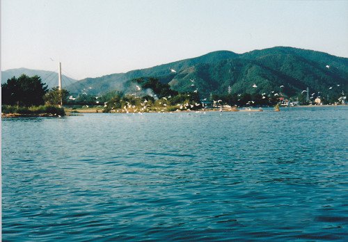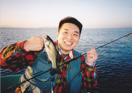 1998年10月 当時大阪に住んでいた大学の先輩と琵琶湖へ行くことになった。 先輩と会うのは卒業以来2回目。 僕が先輩の家に行くと、出発まで少し時間があったので家に入れてもらってしばし釣り談義。 学生時代はソルトに傾き、シイラやガーラを追いかけていた先輩も、時間的金銭的理由で現在はブラックバスの トップウォーターが主流とか。 最近の写真も見せていただいたが、かなり大きなバスが結構大きなトップウォータープラグを咥えて写っている。 (ただし残念ながら一人釣行の悲しさ、魚だけの写真ばかりなのでどれも一緒に見える・・・) さらに凝りやすい方なのでルアーメイキング、ロッドメイキングにまで手を伸ばしている、とのこと。 部屋には小型の木工工作機械がいくつか置いてあったが、マンションでは近所迷惑だったに違いない。 かなり早い時間に現地に着く必要があるので、夜中に出発。 砂浜になっているところに車を止めて準備開始。 先輩:「これが結構たいへんなんよ」 今回は手漕ぎのゴムボートでの釣り。 釣りをしない人の中にはゴムボートと言うと海水浴のビニールボートも同じと思う人もいるようだが、 ビニールボートでは耐久性が低すぎて釣りをするには非常に危険。 釣り用のゴムボートは、ある程度ラフに扱っても穴が開いたりしにくくなっていて、その分ゴムも分厚くかなり重い。 やっとボートを膨らませ、釣り準備を終えた頃にはすっかり体が温まってうっすら汗までかいている。 その後はいよいよ出船となるが、手漕ぎなので当然手で漕ぐ。 柿之介:「いい運動ですね」 先輩:「今はまだ追い風やから楽。帰りは頼んだ」 さて、朝マズメの一番よい時間に投げるのはもちろんトップ。 それも、ハトリーズやオリザラあたり。 こんなんで釣れるかなぁ、、と思いきや、バイトは何度もありそのうち何匹かはキャッチもできた。 柿之介:「結構つれますね!」 先輩:「そうやろ?今日はイマイチな方やけど」 とはいえ、さすがにトップで釣れる時間は短く、日が高くなるにつれ魚の反応もなくなってきた。 先輩:「トップはダメでも、ウィードの端でこれを使えばまだ釣れる」 それはバスアサシンというスティックベイトでそのときのマイブームだったらしい(笑) でも実際釣れたし、小さいワームで釣るよりは面白かった。 ![]() いや〜それにしても学生時代から15キロくらいは増えてるな 10時すぎになると、 先輩:「そしたら休憩しよか」 先輩の釣りスタイルでは、朝と夕方に気合をいれて釣りをし、昼間は休憩(昼寝)をするらしい。 効率は良いが、貧乏性の僕にはなかなかできないことである。 車を止めてある浜まで帰ってきて、車の横に膨らんだままのボートを置いて、しばし昼寝。 秋になりかけの季節、昼寝は気持ちがいい。 15時ごろ起床。 再びボートを漕いで出撃。 だが、この日の夕マズメは反応が悪くトップではあまり釣れなかったので、スティックベイトに変更し、 ポツリポツリと拾って終了となった。 遅くまで粘って、真っ暗な中を手漕ぎゴムボートで帰ってくるのは少し怖かったが、充実したバス釣りだった。 ![]() |