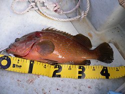 若狭大島で釣れるもんを釣る 2004年12月12日 晴れ 風少し強い 船酔いがなかなか回復しないまま、釣りを続ける柿之介。 そのうち海の状態は「ベタ凪」と言えるほど穏やかになってきた。 「今なら吐きやすいかな」という思いもあったが、ここはなんとか踏みとどまって「今年は船釣りで一回も吐かなかった」という自信につなげたい。 弱々しくしゃくるリズムがよかったのか、この時3人の中では僕が一番魚を釣っていた。